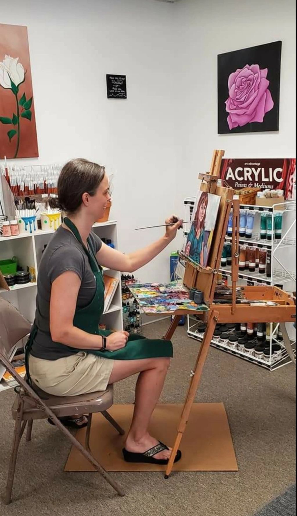 Jess Emmert (R) Resident Artist, Art Party Leader, Brushstrokes and Besties Art Kits